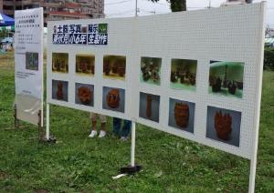 東伏見小学校は、児童が制作した縄文土器の写真を展示しました。制作した土器は、フシミ式土器として学校の展示会に展示されるそうです。