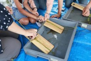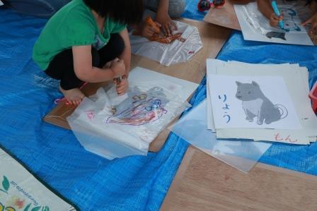 また、藍のたたき染めで五輪フラッグをつくるコーナーもあり、子どもも大人も多勢の人が参加してくれました。