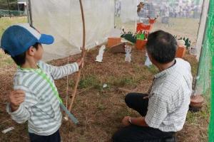 縄文時代の狩猟採集をイメージしたストラックアウト「ハンティングゲーム」は、減点の的もあるのでハラハラドキドキ!