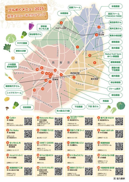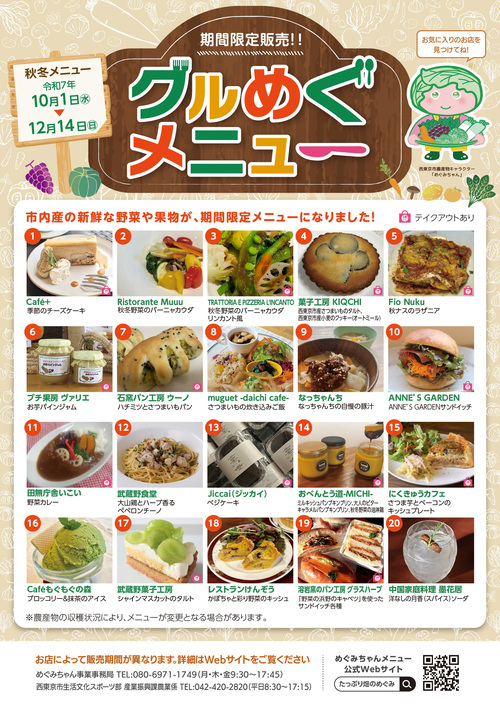 市内のめぐみちゃんメニュー事業参加飲食店が考えた、旬の市内産農産物を使った秋冬の「グルめぐメニュー」を