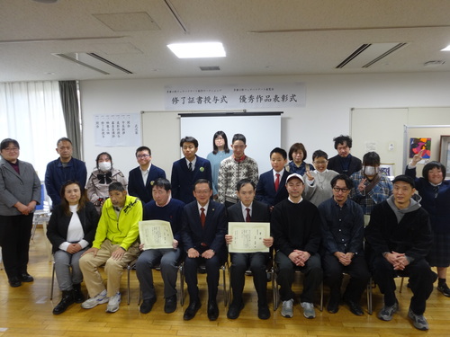 最後にはワークショップに参加していただいた受講生への修了証の授与式と、展覧会に出展した作品の中から選出された優秀作品の表彰式を行い、事業を終了しました。