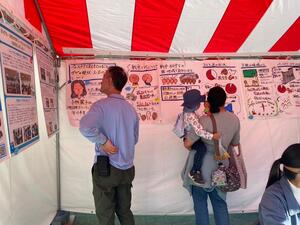 今回、ワークショップの中で作成したグラフィックレコーディングや、子ども達が描いた平和の絵は、11月9日開催された市民まつりにて「子ども・若者平和ワークショップ展」として会場に展示しました。
