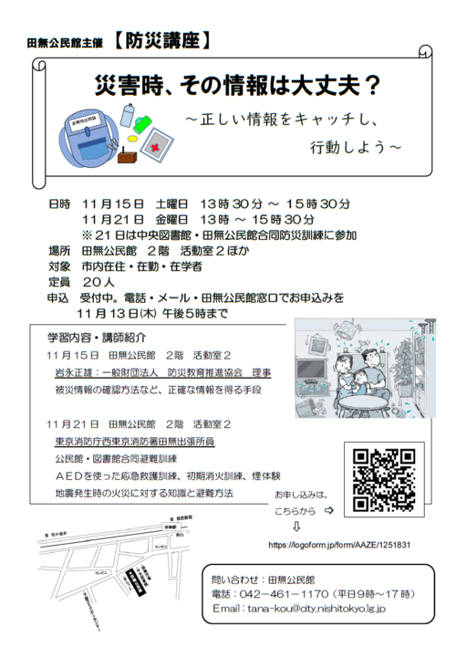 電話・メール、申込フォーム・田無公民館窓口で受付中