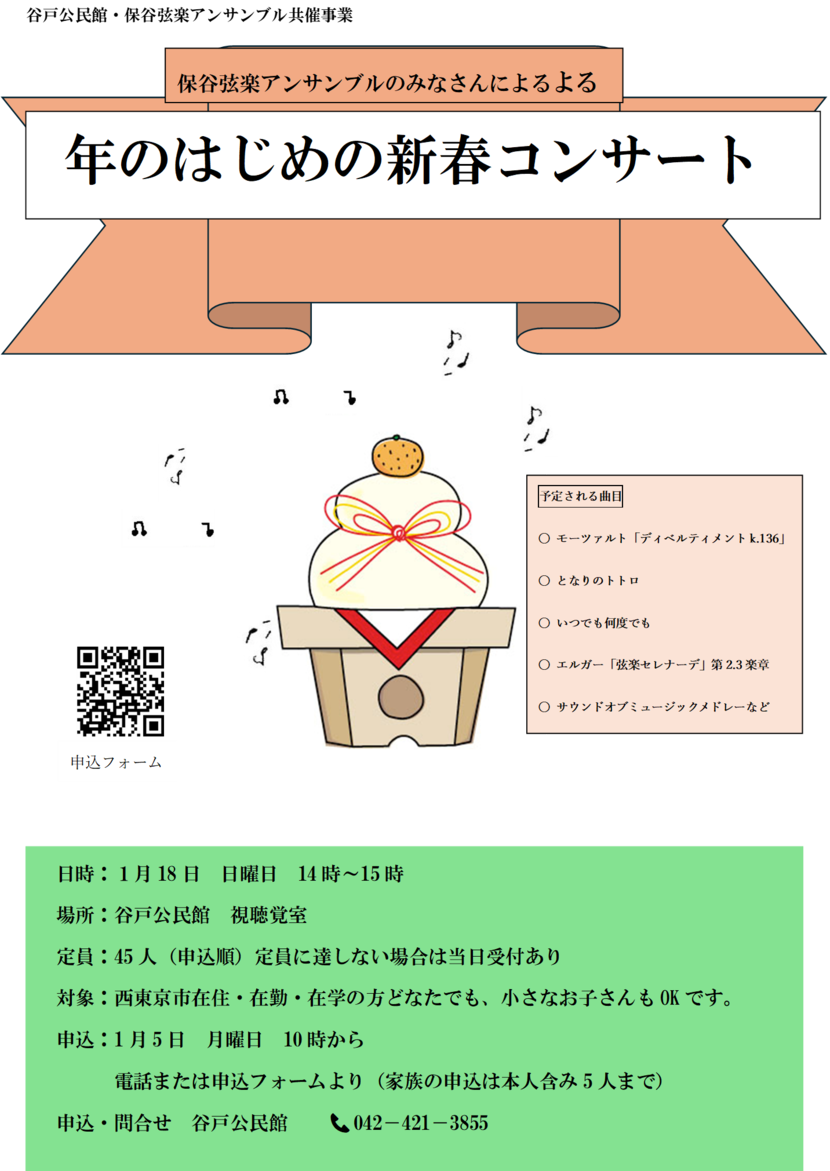 新しい年のはじまりを、保谷弦楽アンサンブルのみなさんによる素敵な音楽を聞きながら一緒に祝いましょう!