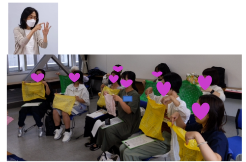 ・軍手をはめて、幼児期の指先の感覚を疑似体験