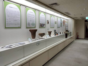 1階エントランス・3階展示スペースでは、土器や展示パネルなどを用いた展示を実施しました。
