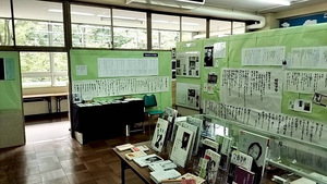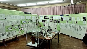 展示資料には、写真パネルや解説キャプション、出版された詩集などが用いられ、