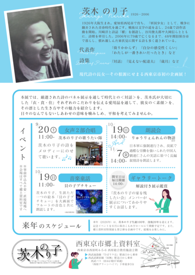 企画展 守りぬこうこのなんでもないしあわせ~西東京市で紡がれた茨木のり子平和の言葉~