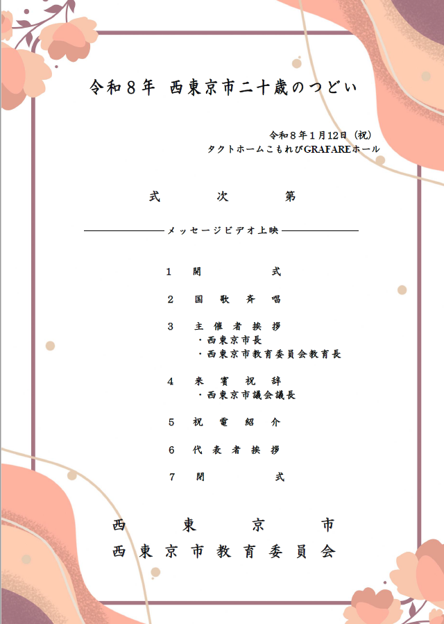 令和8年西東京市二十歳のつどい式次第はこちらから