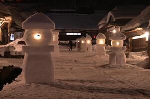(3)大内宿の夜(雪灯籠)