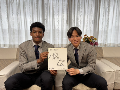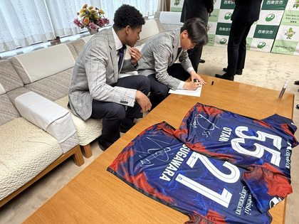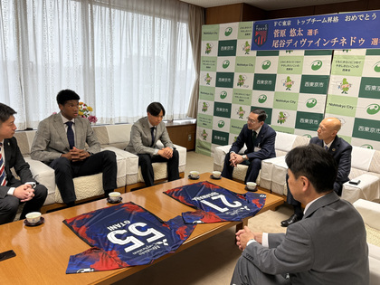 西東京市出身でFC東京所属の菅原悠太選手、尾谷ディヴァインチネドゥ選手が市長を表敬訪問されました!