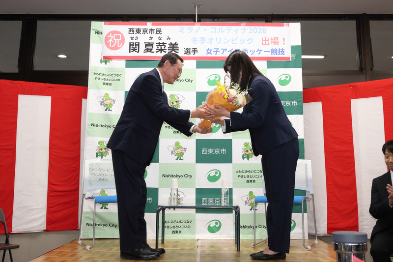 令和8年2月6日(金曜日)から22日(日曜日)の期間で開催される、ミラノ・コルティナ2026冬季オリンピッにおいて、女子アイスホッケー競技に出場される西東京市民の関 夏菜美(せき かなみ)選手の壮行会を令和8年1月15日(木曜日)に田無庁舎にて、実施しました!