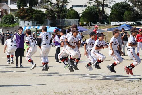 (注記)10人が1列に並んで同時に跳び、連続で跳べた回数を競います