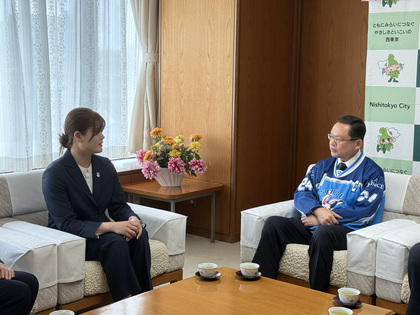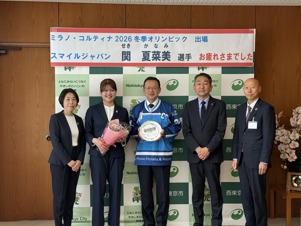 令和8年4月13日(月曜日)にミラノ・コルティナ2026冬季オリンピック女子アイスホッケー競技に出場した西東京市民の関 夏菜美(せき かなみ)選手の大会出場報告のため、市長を表敬訪問されました。