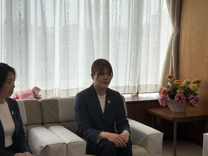 令和8年4月13日(月曜日)にミラノ・コルティナ2026冬季オリンピック女子アイスホッケー競技に出場した西東京市民の関 夏菜美(せき かなみ)選手の大会出場報告のため、市長を表敬訪問されました。