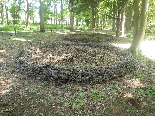 園内に設置しているバイオネスト(公園管理で発生した枝葉や落ち葉を堆肥として再利用するための鳥の巣状の堆肥置場)