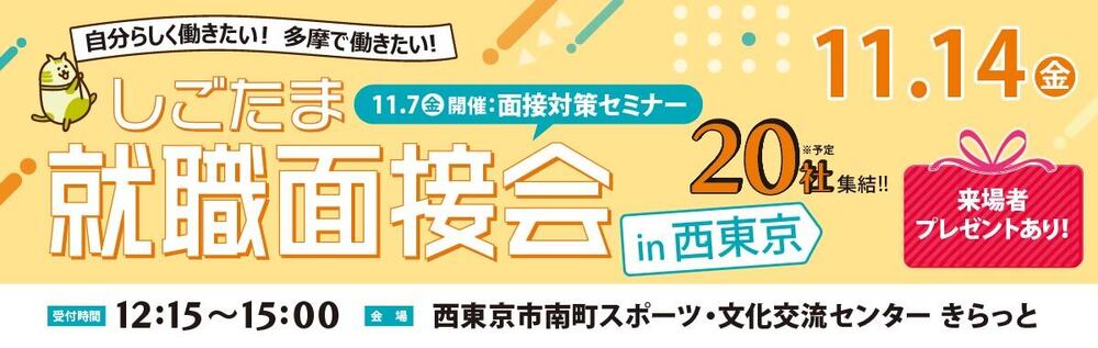 東京しごとセンター多摩と西東京市を含む多摩地区6市の共催により、合同就職面接会を開催します。