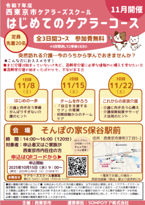 11月「はじめてのケアラーコース」及び12月「認知症ケアを学ぶケアラーズセミナー」の募集開始