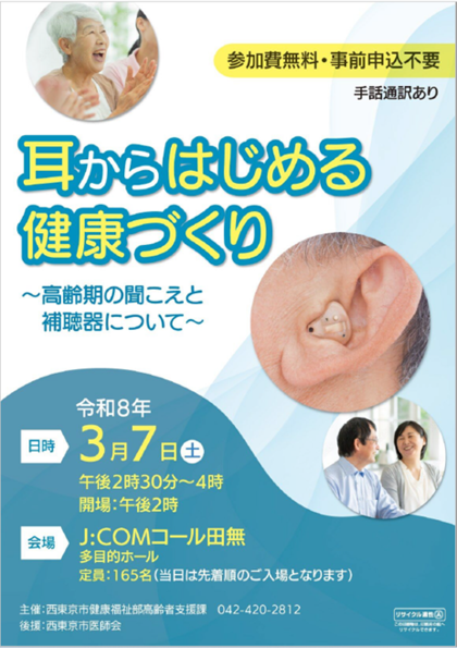 最近、聞こえづらくなってきたと感じることはありませんか?聞こえと認知症との関係や補聴器の選び方、アフターケアなどについて、補聴器相談医と認定補聴器技能者が講演します。