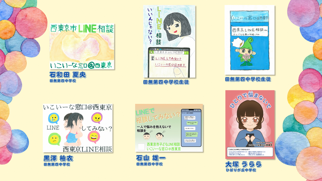 子どもLINE相談「いこいーな窓口@西東京」をもっと身近に感じてもらえるように、市内の中高生世代の方にポスターのデザインを募集しました。