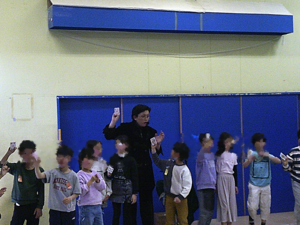 子ども達と一緒にマジックをしている様子