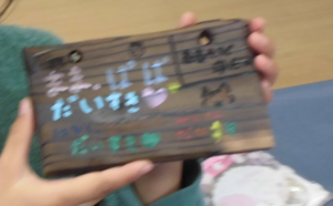 ポスカで好きな絵をかいて、ドアプレートにしたり部屋に飾ったりしましょう!