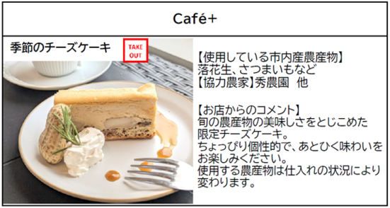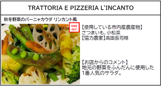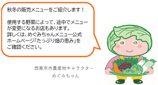 市内のめぐみちゃんメニュー事業参加飲食店が考えた、旬の市内産農産物を使った秋冬の「グルめぐメニュー」を期間限定販売しています。