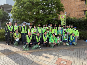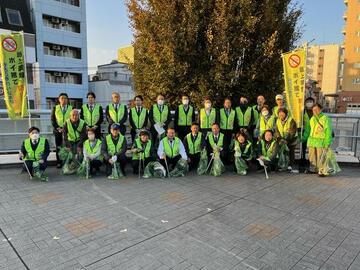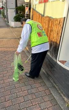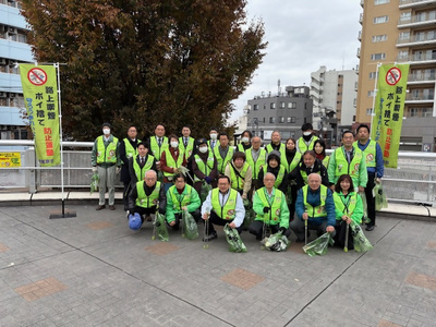 当日は薄曇りの中、参加団体や地元商店会、自治会の方39名の参加で「路上喫煙・ポイ捨て防止地区」の清掃活動を行い、8.25キログラムのごみを回収しました。