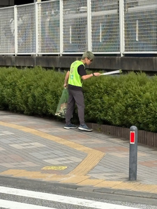 約9.7キログラムのごみを回収し、内たばこの吸い殻は約1,410本でした。今回は路上喫煙者に対し、職員が路上喫煙防止地区であることを周知しました。
