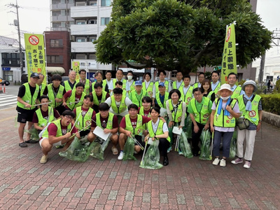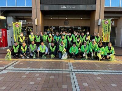 当日は市職員、協力団体の方や、地元商店街の方が参加していただき、全体で20名が参加し、「路上喫煙・ポイ捨て防止地区」の清掃活動を行いました。