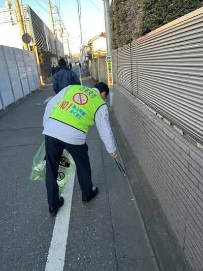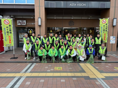 令和7年2月13日(木曜日)7時から8時まで田無駅周辺において「路上喫煙・ポイ捨て防止地区」周知キャンペーンを実施しました。当日は晴天の中、市長も参加し、協力団体の方や地元商店街の方、推進会議委員の方など、35名が参加し、「路上喫煙・ポイ捨て防止地区」の清掃活動を行いました。約14キログラムのごみを回収し、うちたばこの吸い殻は1,857本でした。