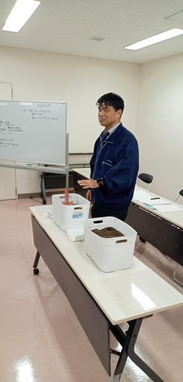 最後に職員が自宅で実践している簡単にできる自作の生ごみ処理コンポストについて紹介し、終了しました。
