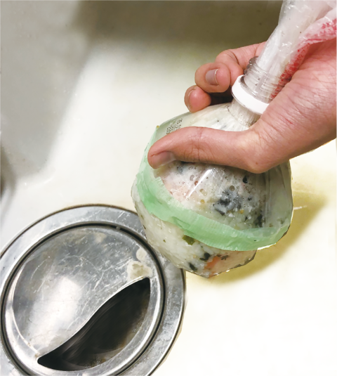 最後にギュッと絞ることにより一層のごみの減量になります。