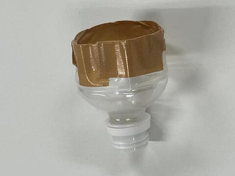 ペットボトルの上部を切り取り、手を切らないようにテープなどを貼る。