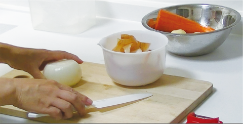 野菜や果物の皮等は別容器に入れ、水にぬらさないことで減量になります。