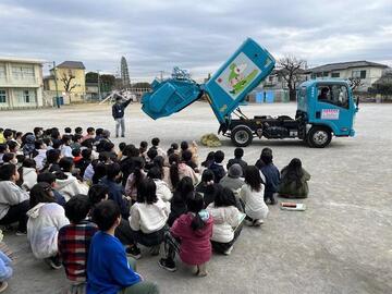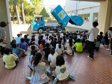 ごみ収集車を初めて見た児童のみなさんは、熱心に見学されていた様子でした。