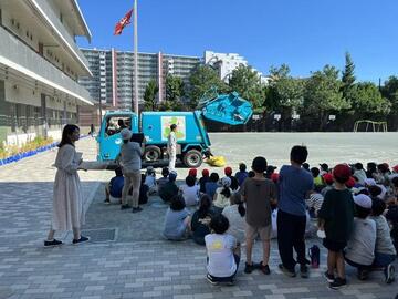 ごみ収集車を間近で見た児童のみなさんは、興味津々で見学されていた様子でした。