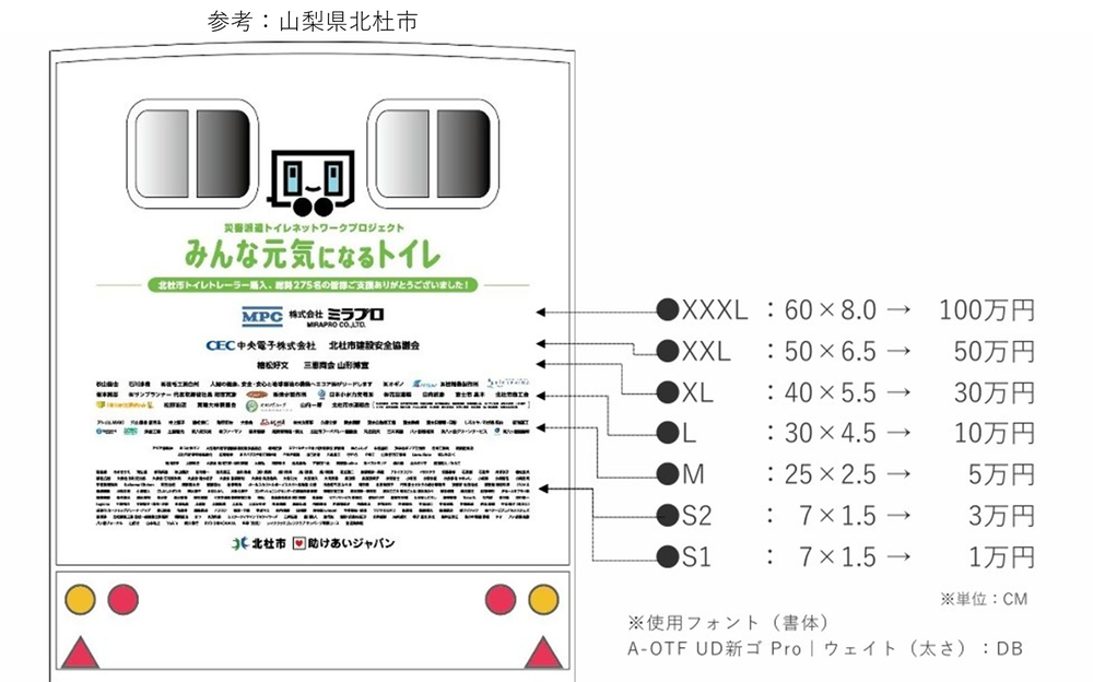 寄附をいただいた方のお名前をトイレカー車両後面に掲載いたします。