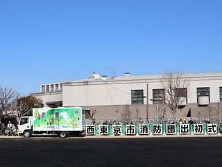 令和8年1月11日(日曜日)に実施した令和8年西東京市消防団出初式でトイレカーのお披露目を行いました。