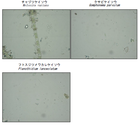 夏季調査、冬季調査合わせて、 ベニイトモやクサビケイソウ、フネケイソウ等の5鋼11目20科64種の付着藻類が確認されました。
