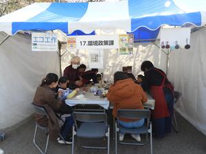 (2)エコ工作の様子。みんな楽しそうに工作をしていました。