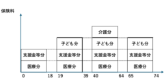 国民健康保険料(以下「保険料」と略します。)は、国民健康保険(以下「国保」と略します。)加入者の皆様が病気やけがをしたときの医療費や出産育児一時金、葬祭費などの給付にあてられる基礎賦課額(医療分)、75歳以上の後期高齢者にかかる医療制度を支援するための後期高齢者支援金等賦課額(支援金等分)、加入者のうち40歳以上65歳未満の方(介護保険第2号被保険者)に賦課される介護納付金賦課額(介護分)、子育て世帯に対する給付を拡充するための子ども・子育て支援金等賦課額(子ども分)の合計額となっています。