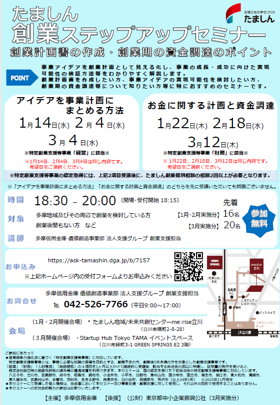 たましん創業ステップアップセミナーチラシ(PDF:629KB)