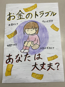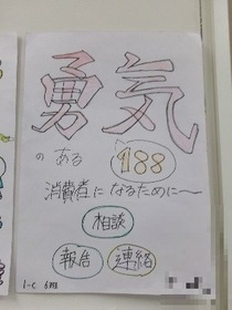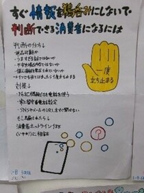また、生徒の皆さんは消費者トラブルを防ぐための啓発物も作成し、ポスター、寸劇、替え歌、紙芝居、クイズなど、さまざまなアイディアが出されました。