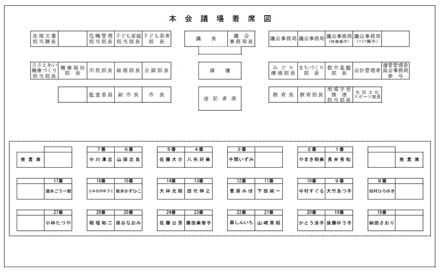 - 傍聴中はみだりに席を離れないでください。
