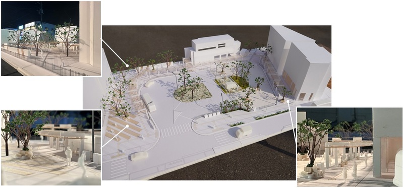 田無駅南口交通広場を整備するまでの間、整備イメージを身近に感じてもらうことができるよう、事業用地の一部にさまざまなサンプルを設置しました。