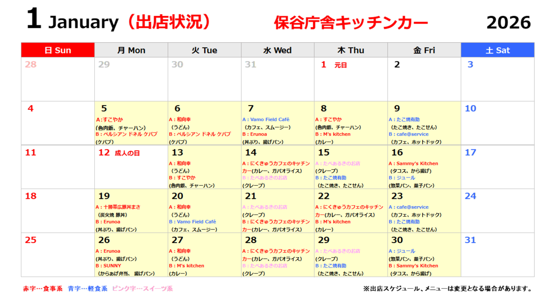 保谷庁舎市民広場周辺では、キッチンカー等が下記スケジュールで出店します。